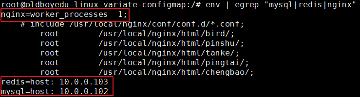 kubectl exec -it oldboyedu-linux-variate-configmap /bin/bash env | egrep "mysql|redis|nginx"