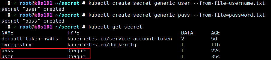 kubectl create secret generic user --from-file=./username.txt kubectl create secret generic user --from-file=./password.txt