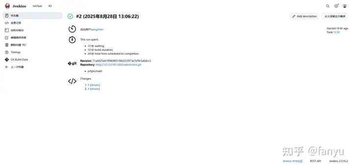 http://admin:11da0f60c16eb8d729d3568819f9e01466@10.15.0.95:40312/job/netTask/build?token=11d77eac422c019d7c450b49a80401ae格式【http://<jenkins_username>:<jenkins_user_token>@<jenkins_ip>:<jenkins_port>/job/<jenkins_taskname>/build?token=<jenkins_api_token>】
