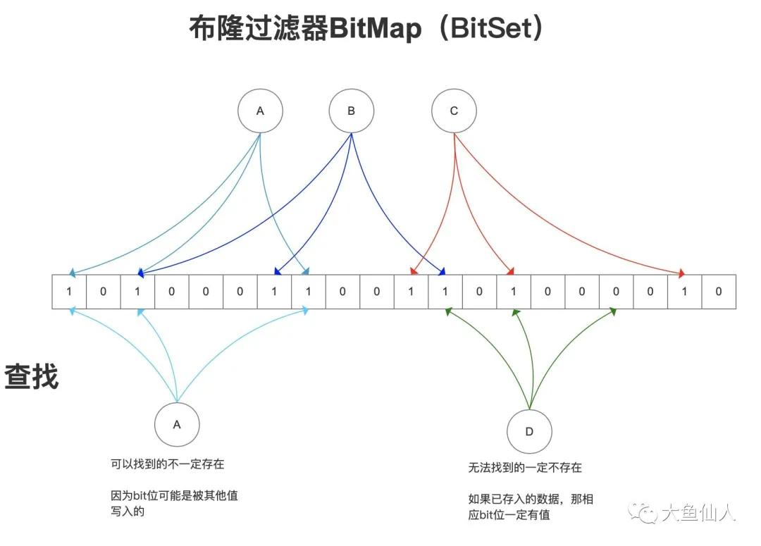 此时如果恶意请求携带商品为-1的请求打过来,也会对-1进行相应的操作,于是得到16个哈希值,对应bit数组中的16个位置,我们可以通过判断这16个位置是否全是1来判断数据库中是否存在-1这个商品