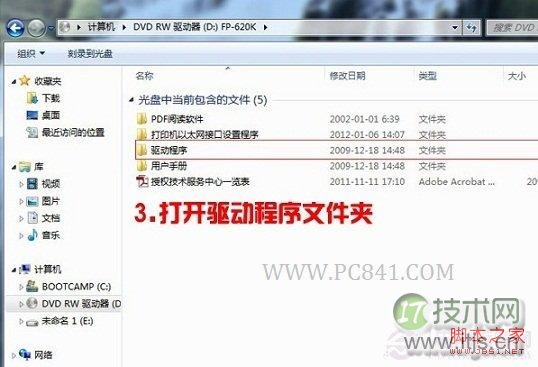 3、然后我们鼠标双击光驱图标打开进入光驱,这里我们以映美FP-620K针式打印机光驱驱动为例,进入里边可以找到驱动程序,我们点击进入,如下图: