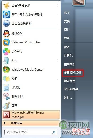 Win开始菜单找到打印机