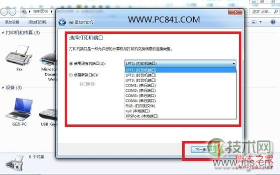 选择添加打印机端口