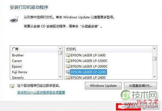 Windows 7打印机安装驱动程序界面