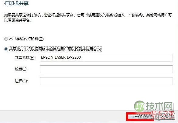 6、等它的驱动加载好了之后,就可以选择是不是共享这台打印机了,有需要的朋友可以设置一下的哦,假如不需要共享打印机,请选择第一项。