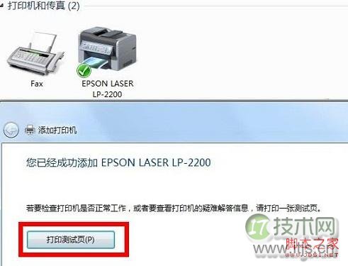 完成Windows 7打印机安装