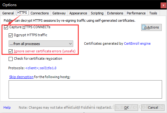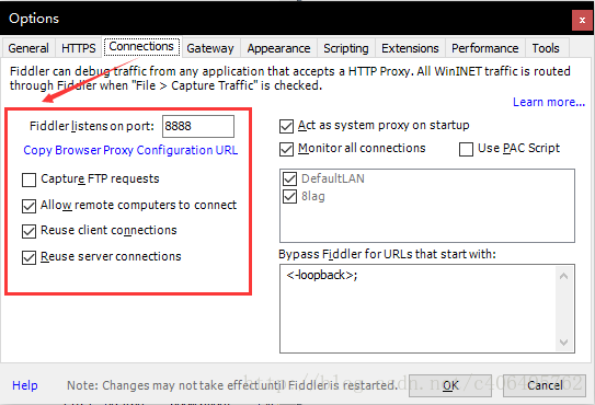 Allow remote computers to connect:允许别的机器把请求发送到fiddler上来