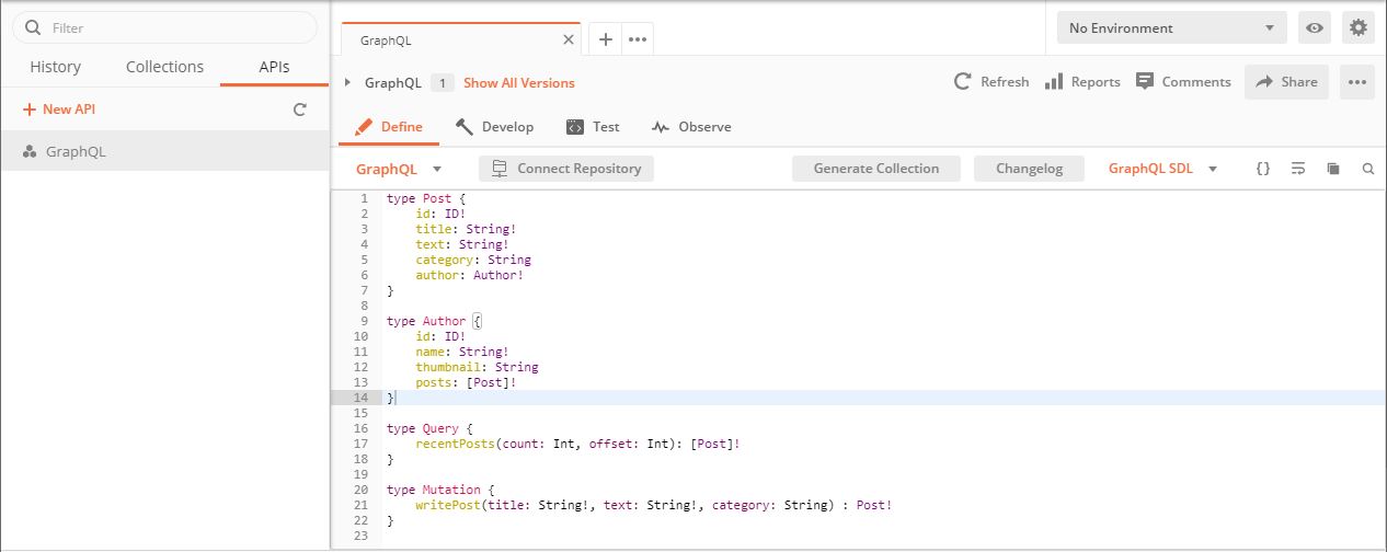 使用Postman可以很方便地测试GraphQL,也允许我们导入Schema并生成查询。使用试