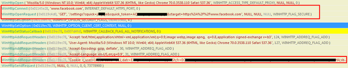 其他浏览器的程序也类似,像滥用InternetGetCookieRxW 和 IEGet ProtectedMode Cookie 等功能,窃取存储在 Explorer 和 Edge 中的所有 cookie。窃取和解密会产生明文用户名和密码,然后通过 HTTP POST 请求将其泄露到 C2 服务器。