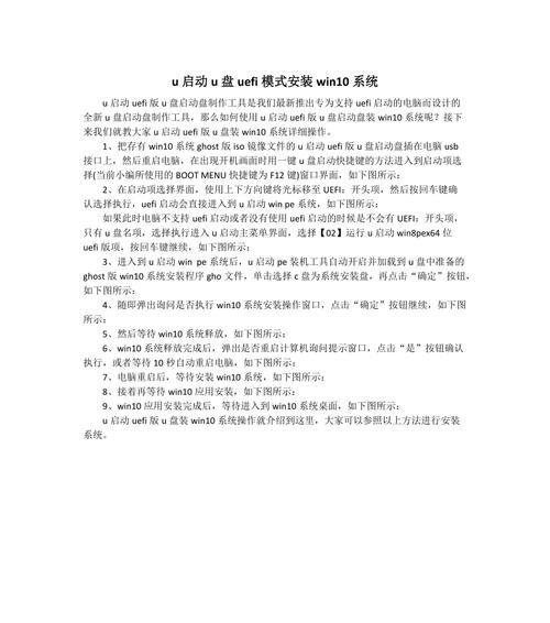 通过本文所介绍的方法,可以轻松地利用UEFI启动U盘安装系统,提高安装效率和稳定性。