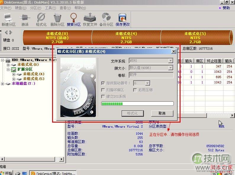 9.需要分区的硬盘正在自动分区并格式化。如图七
