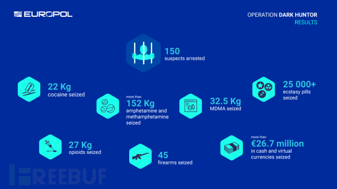 多国执法部门联合逮捕了150名从事非法商品交易的嫌犯