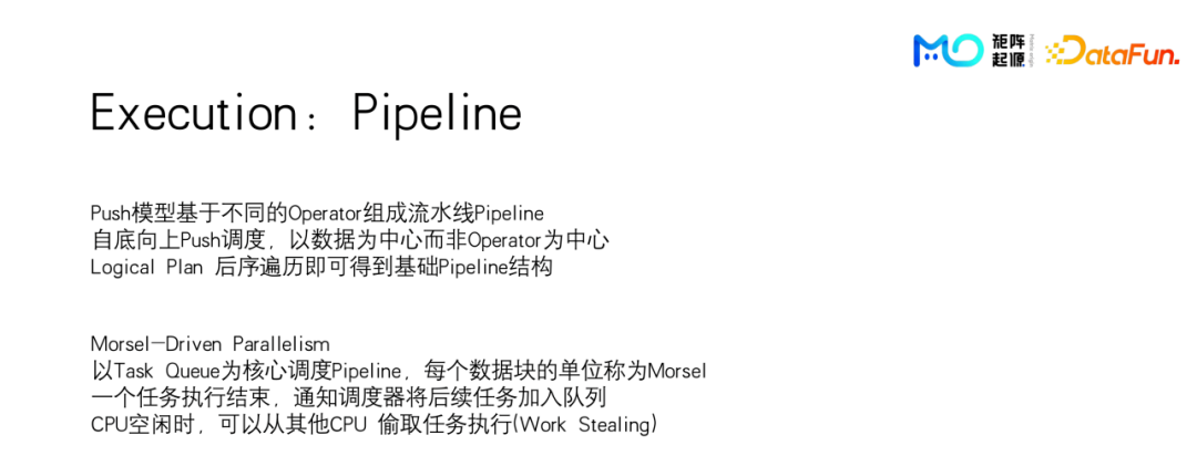 最后是执行器部分,从逻辑计划转化到实际可执行的pipeline,执行器的好坏对OLAP系统的执行效率影响是非常大的,下面会做详细介绍。