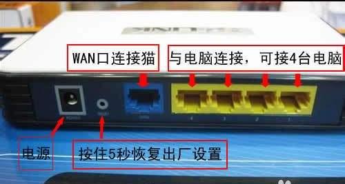 将无线路由器的电源适配器插入插座,并将宽带线连接到无线路由器的WAN口。