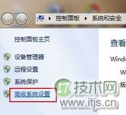 1、首先打开Windows 7控制面板,进入“系统和安全”,在左侧导航栏中打开“高级系统设置”。
