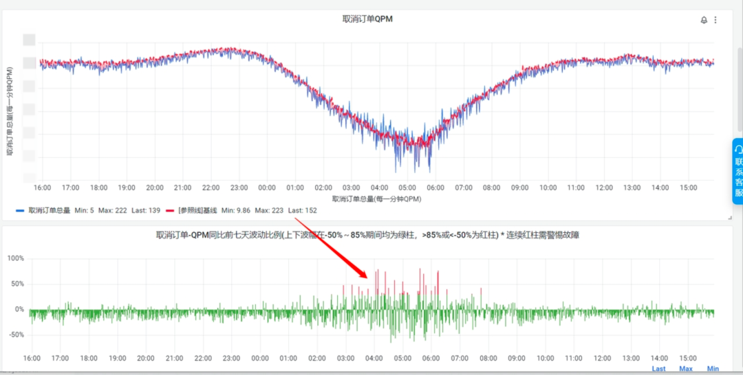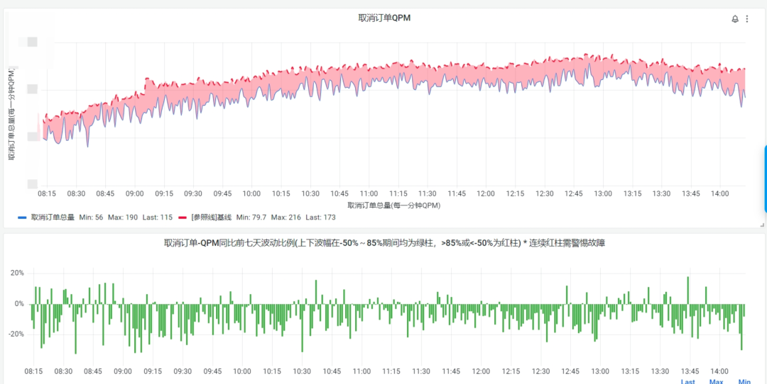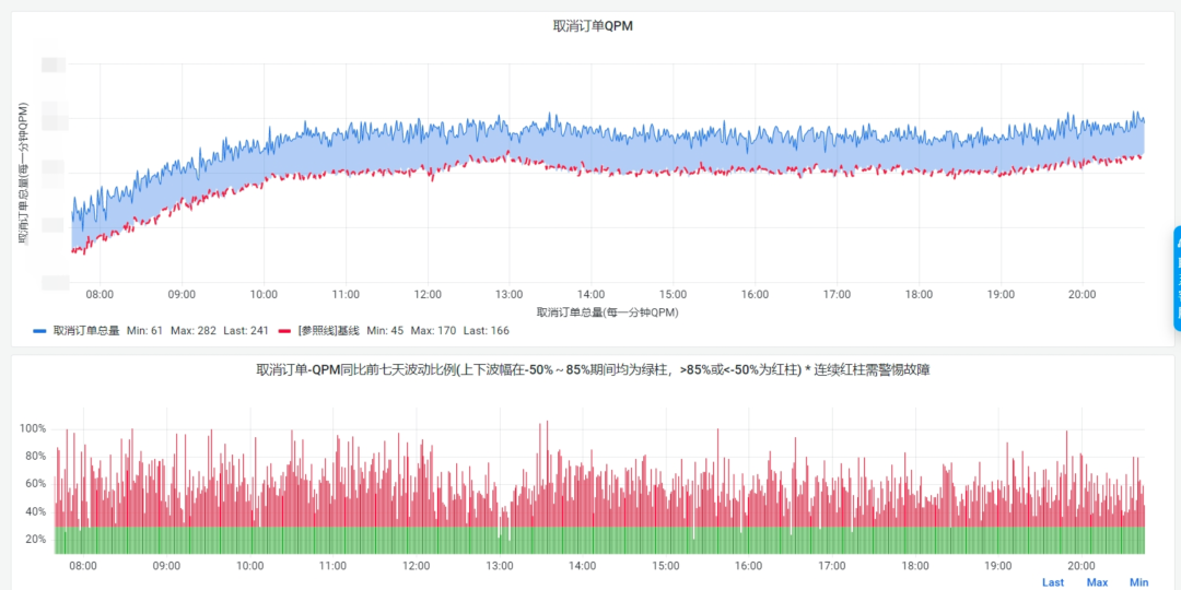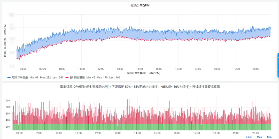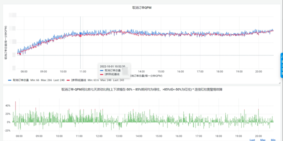 一些比较特殊的场景可能会有些差别,但绝大多数场景都可以按此进行配置,还是以取消订单为例,智能基线大盘如下: