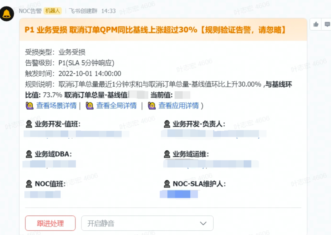 在对于SLA告警的摸索阶段,团队就已经预估到后面可能面临着大量噪音的骚扰,因此组建起一个告警测试群,用于针对性的调优;团队为了测试线上告警误告水位,测试性地将SLA场景告警规则进行接入。果不其然,上个厕所回来,群里已经积攒上百条告警了,根本无法提取出有效的告警,其原因就是亿华云我们的告警规则配置都是相对单一的,全天候就一条规则,如: