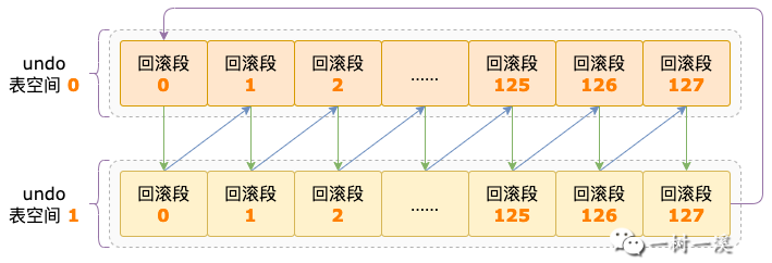 用户临时表只有一个独立 undo 表空间,默认 128 个回滚段,需要分配临时表回滚段时,只要轮流分配就行了。