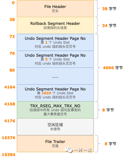 在概述小节,我们介绍过,每个回滚段中都有 1024 个 undo slot,可以统筹管理 1024 个 undo 段,这才是回滚段最重要的职责。