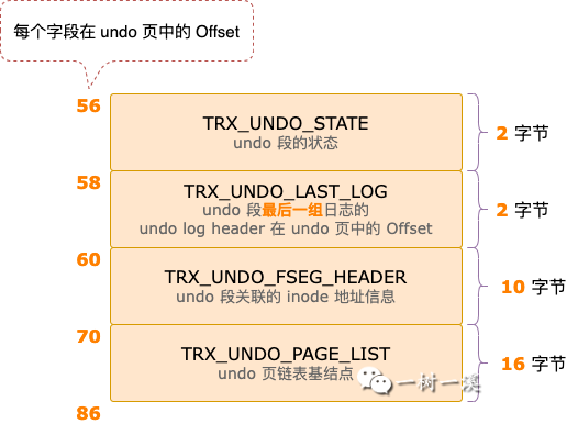 每个 undo 段都会有一个 Undo Segment Header,位于 undo 段的段头页中,如下图所示: