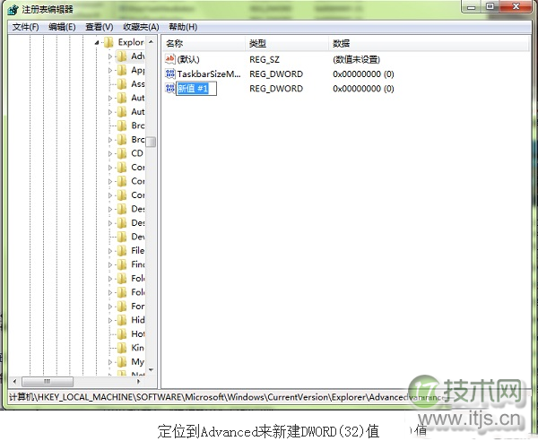 2.定位到HKEY_CURRENT_USERSoftwareMicrosoftWindowsCurrentVersionExplorerAdvanced