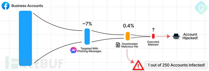 Guardio Labs 表示此次网络攻击活动规模庞大,香港云服务器Facebook 所有企业账户中约有 7% 已成为了攻击目标,其中 0.4% 下载了恶意存档。再加上感染该恶意软件后,用户仍需执行批处理文件,因此被劫持账户的数量尚不清楚,但可能数量相当可观。