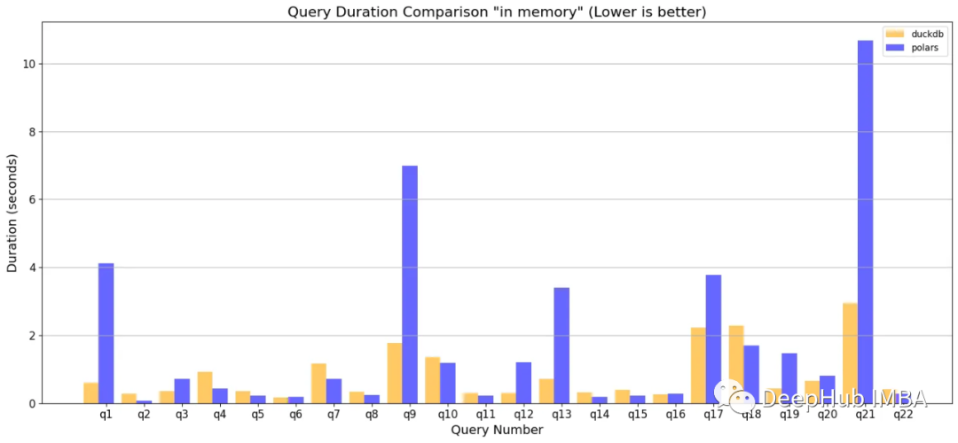 总的来说DuckDB在这两种情况下看起来更快,但这并不是全部。