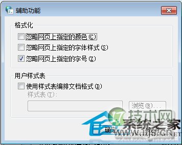 3、然后在打工的辅助功能小面板上,选择勾选“忽略网页上指定的字号”,再点击确定按钮保存。