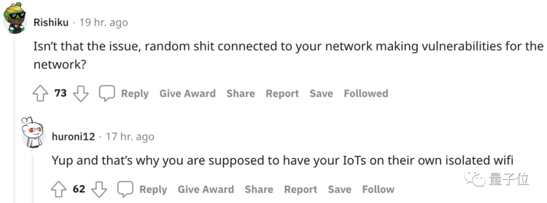 对此有不少网友吐槽,IoT设备的安全性堪忧: