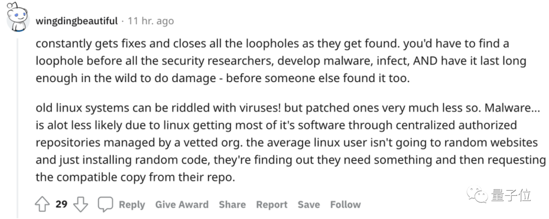 对此有网友提出疑惑,正因为Linux开源,它似乎无论如何都会面临病毒和恶意软件的泛滥?
