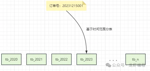 基于时间分表迁移是根据时间范围(如同一年的数据放在一个表)将数据划分出来,如下所示:
