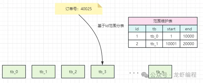 基于id范围进行数据迁移的方案是维护一张id访问表,然后将指定的id范围放入某张表中,如下所示: