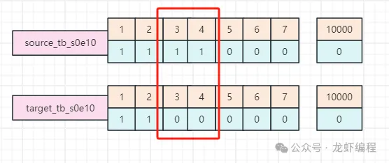 target_tb_s1e10:表示目标表中开始的id从1开始,结束的id是10000,这样就表示id在1-10000范围的数据在目标表中的保存情况(主要是记录是否保存到目标表)。