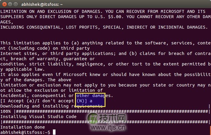 在抛出一堆要求和条件后,云南idc服务商它会询问你是否确认安装Visual Studio Code。输入‘a’来确定: