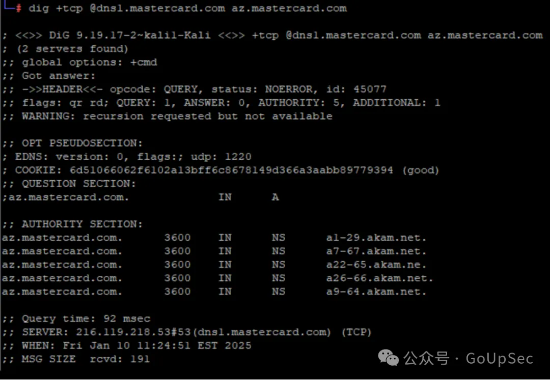大多数组织至少有两个权威域名服务器,但像MasterCard这样处理大量DNS请求的组织,需要将负载分散到更多的DNS服务器域名上。在MasterCard的案例中,这个数字是五个。因此,如果攻击者设法控制了其中的一个域名,源码库他们将只能看到大约五分之一的总DNS请求。
