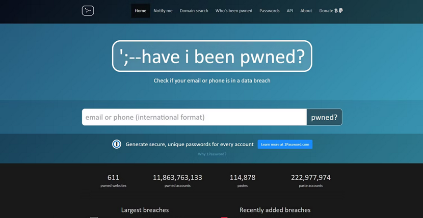 Have I Been Pwned是Troy Hunt创建的免费网站资源,该网站收集了大量被拖库的数据库,可供用户查询自己的个人信息是否因数据泄露受到损害。用户只需在搜索框中输入要查询的姓名或电话号码,它就会搜索泄露数据库以查看对应的凭据是否已遭泄露。如果发现相关泄露事件,下滑页面就可以看到泄漏的信息。