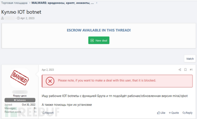 此外,暗网市场还提供针对物联网设备中的零日漏洞的漏洞利用程序,以及与基础设施和支持工具捆绑在一起的物联网恶意软件。