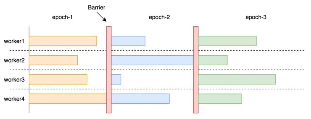 在图计算(AP)场景中,一次计算往往要经过很多轮迭代(Epoch),并且每轮迭代后都需要进行全局指标的更新,更新完再继续下一轮迭代。在 Epoch 之间插入 Barrier 做同步是有必要的。