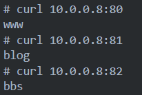 # vim /application/nginx/conf/extra/01_www.etiantian.org.conf server { listen 80; server_name www.etiantian.org; location / { root html/www; index index.html index.htm; } } # vim /application/nginx/conf/extra/02_blog.etiantian.org.conf server { listen 81; server_name blog.etiantian.org; location / { root html/blog; index index.html index.htm; } } # vim /application/nginx/conf/extra/03_bbs.etiantian.org.conf server { listen 82; server_name bbs.etiantian.org; location / { root html/bbs; index index.html index.htm; } }| 检查语法并重启