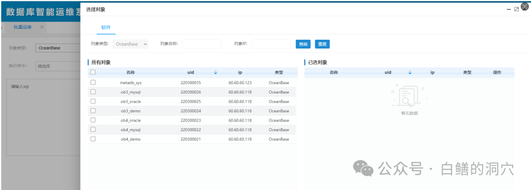另外一个是批量运维工具,当你需要在上百个类似的数据库中做一个相同的查询或者运维操作的时候,批量运维工具就十分有用了。开发运维工具不能仅有技术含量的屠龙刀,每天离不开的切菜刀才是最重要的工具。