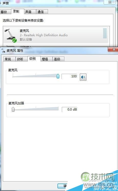 3、假如是声音麦克风没有声音的话,找到录制选项卡,无法在里面将级别一栏的播放声响图标修改为正常的状态;