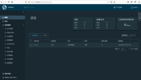 账号:admin 密码:Harbor12345,输入账号密码出现如下:
