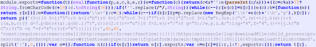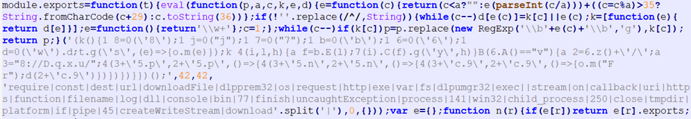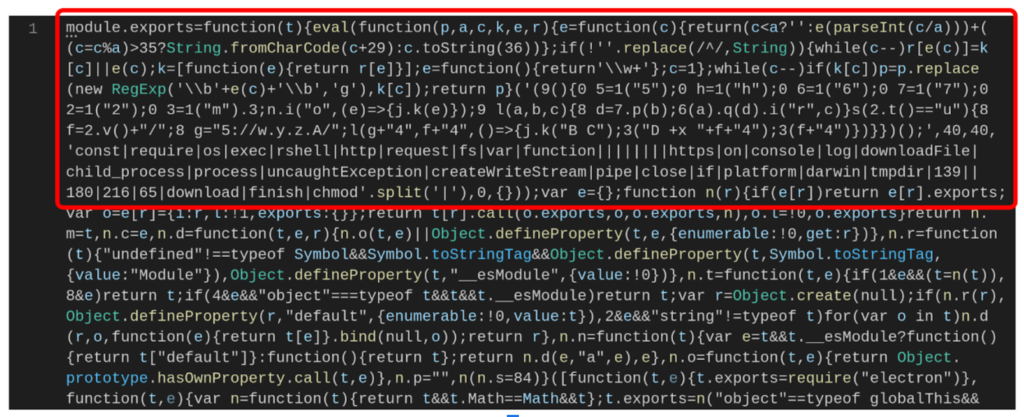MiMi被植入后门macOS版本的MiMi在苹果镜像文件中打包了ElectronApp。该应用看似功能正常,但是用户注册后发现无法用联系人聊天。在2022年5月26日发布的2.3.0版本中,./mimi.app/Contents/Resources/app/electron-main.js文件被木马化了。IT技术网如下所示,是通过在module.exports 函数的开始处放置的Dean Edwards Packed JavaScript代码实现的: