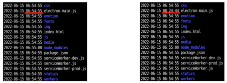 从图中可以看出,攻击者大约用了1个半小时就修改了合法的安装器并添加了恶意代码。而之前的版本,攻击者大约花了一天来注入恶意修改。修改同样是针对electron-main.js文件。