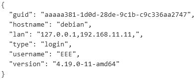 GUID: 随机生成的guid,保存在/tmp/guid计算机名:uname (nodename)IP地址: (getifaddrs)消息类型: loginusername: _getpwuid (pw_name)version: uname (release)收集到这些信息后,后门会将其打包为二进制JSON(BJSON)消息,并发通过TCP以明文形式发送。