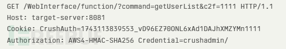 伪造的AWS标头,利用CrushFTP默认"crushadmin"用户名处理S3协议包含特定44字符CrushAuth值的伪造cookie使用c2f参数绕过密码验证检查的参数操控该漏洞源于处理S3风格请求时的认证逻辑缺陷,系统错误地将"crushadmin/"凭证视为有效而不进行正确的密码验证。