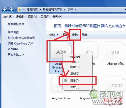 5、香港云服务器中删字体左键单击一个字体,除个程图按下上方的“删除”按钮。或是右键单击一个字体,在弹出的下拉菜单中找到“删除”。就可以完全卸载掉一个字体了。