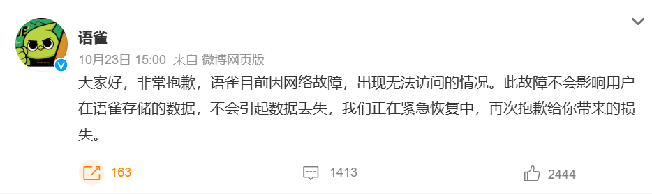 整理丨诺亚出品 | 51CTO技术栈微信号:blog51cto)语雀是蚂蚁集团旗下的在线文档编辑与协同工具。这个不算太出名的大厂产品最近因突发事故而来到了聚光灯下。10月23日,有网友发现,语雀突然崩2025-11-04
