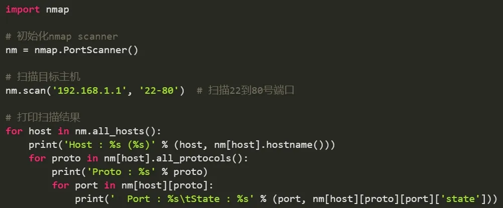 示例:使用nmap库进行网络扫描。